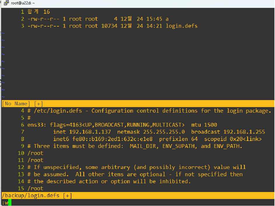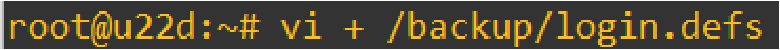● vi로 login.defs를 여는데 + 를 하면 맨 마지막 줄로 커서를 둔 채로 연다.