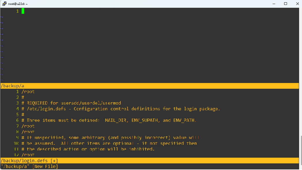 ● 창을 나누면서 /backup/a를 생성하겠다는 명령어