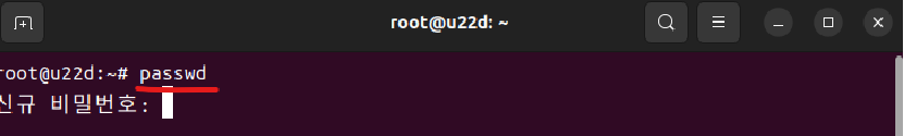 ● root password를 바꾸려면 sudo sh - root로 바꾼후 passwd 명령을 입력하면 비밀번호를 바꿀 수 있다. (하지만, root 비밀번호를 변경했더라도 root 접속은 막혀있기 때문에 아래의 작업을 해준다.)