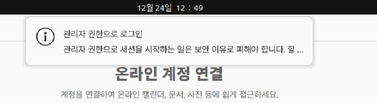 ● 로그아웃 후 root 계정으로 접속하면 바뀐 비밀번호로 접속이 가능하다.